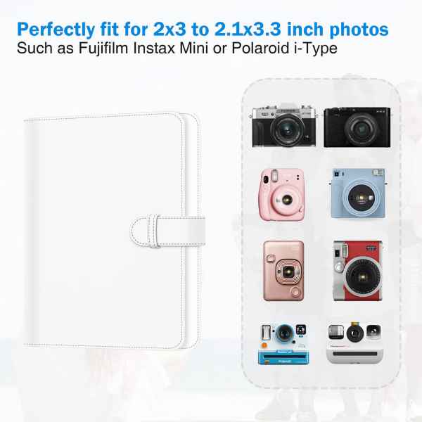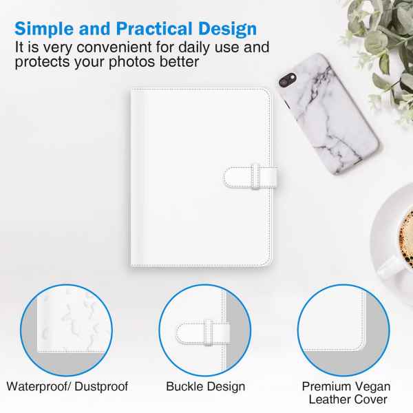 Stilingas baltos eko odos albumas, talpinantis net 256 mini nuotraukas (8 × 6 cm) – puikus būdas saugoti brangiausias akimirkas vienoje vietoje. Kompaktiškas, tvarkingas ir elegantiškas dizainas puikiai tiks tiek namams, tiek dovanai.