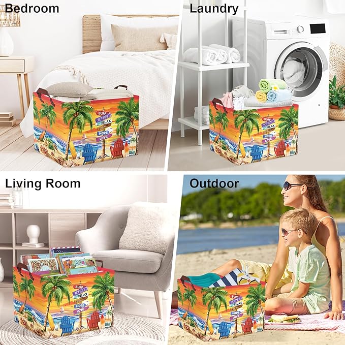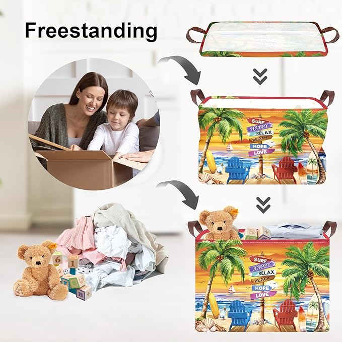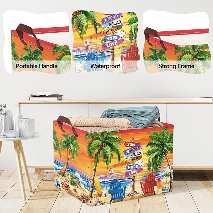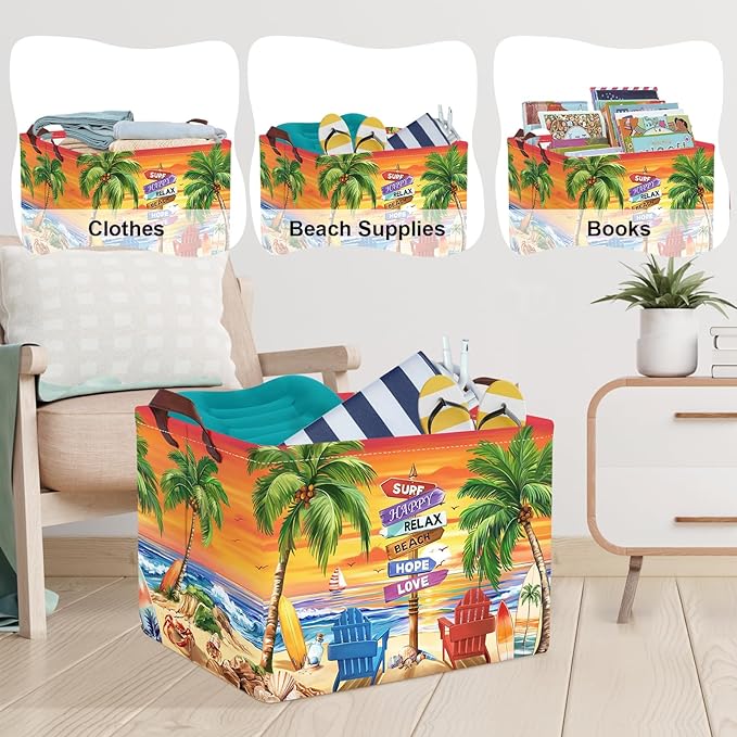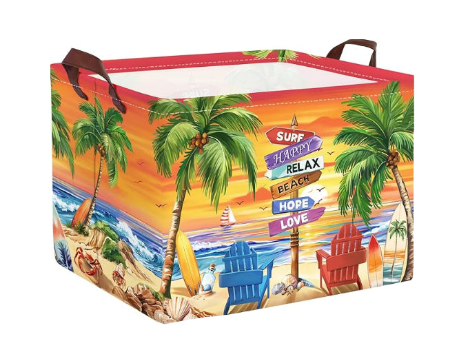 Stilingas ir praktiškas daiktų laikymo krepšys su vasarišku pajūrio dizainu – puikiai tinka namams, kelionėms ar išvykoms.