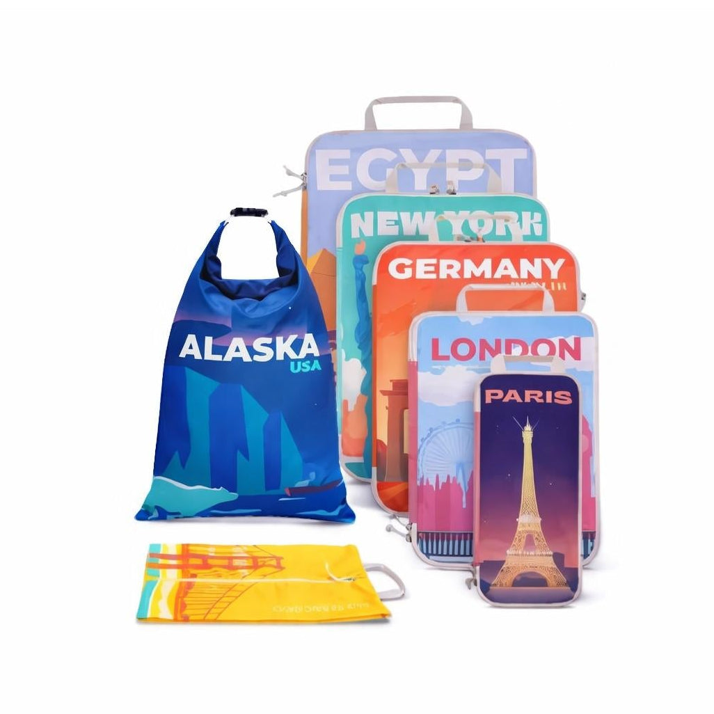 Praktiški ir spalvingi krepšiai, padedantys tvarkingai susidėti daiktus kelionėse. Skirtingi dydžiai leidžia lengvai organizuoti drabužius, aksesuarus ir smulkmenas lagamine.