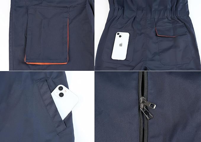 Kombinezonai turi daug kišenių įrankiams, yra lengvai apsivelkami, skalbiami ir greitai džiūsta. Laisvo kirpimo modelis leidžia dėvėti papildomus sluoksnius.