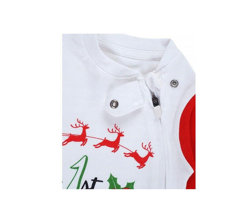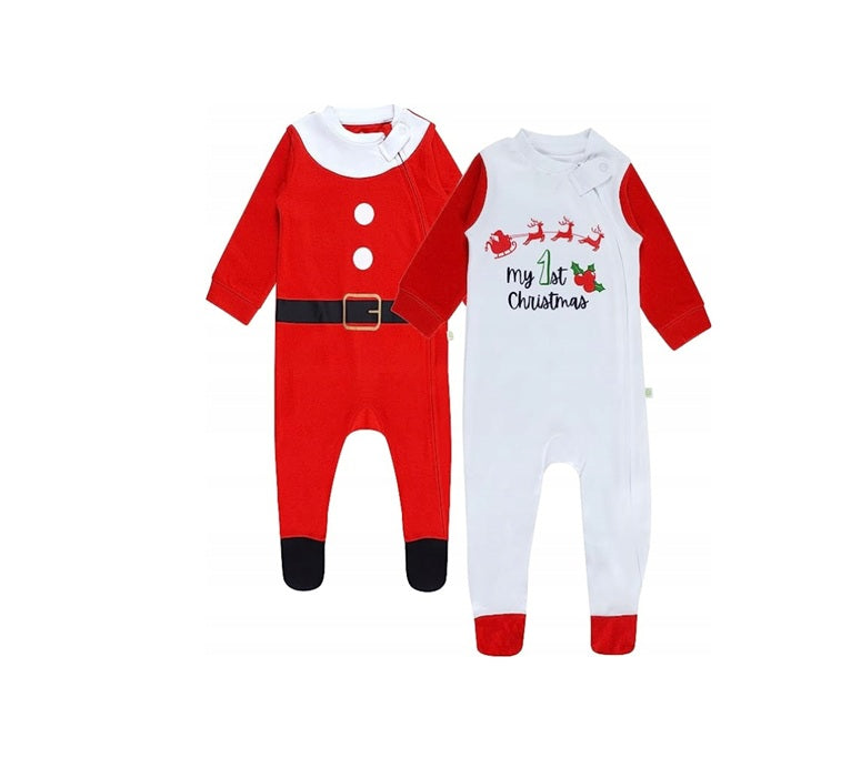 Organinės medvilnės Kalėdiniai romperiukai su pėdutėmis, rinkinyje 2 vienetai, užtikrina komfortą ir šilumą mažyliams šventiniu laikotarpiu. Švelnios medžiagos ir šventiniai raštai puikiai tinka šventinei nuotaikai sukurti.
