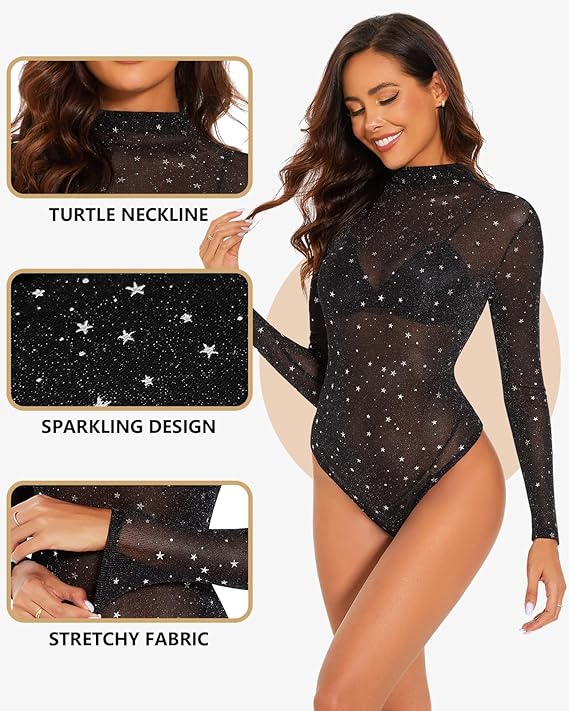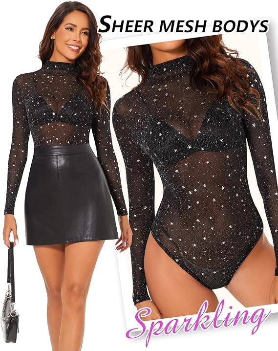 Atraskite stilingą ir drąsų pasirinkimą su WOWENY moteriškais permatomais bodis tipo topais. Šios bliuskutės pagamintos iš lengvos, kvėpuojančios tinklelio medžiagos, todėl puikiai tinka vakarėliams, klubams, pasimatymams ar festivalinėms aprangoms. Ilgos rankovės ir kūną prigludęs siluetas pabrėžia figūrą, o permatomas dizainas suteikia seksualumo ir elegancijos pojūtį.