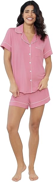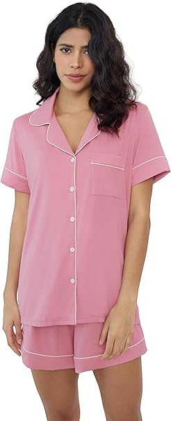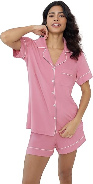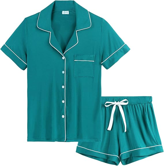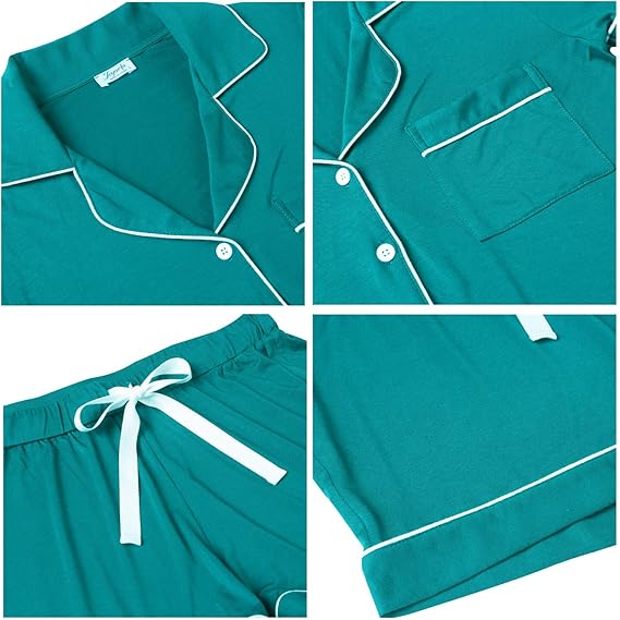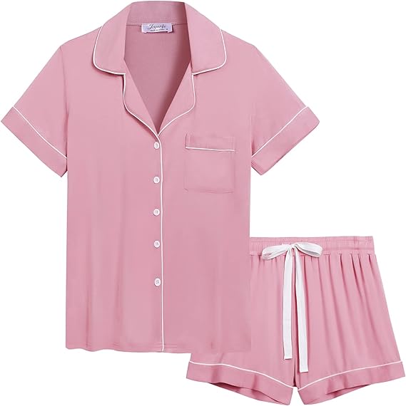 Moteriška dviejų dalių pižama – lengva, minkšta ir kvėpuojanti, užtikrinanti komfortą miegui ir poilsiui. Marškinėliai su sagutėmis, V formos iškirpte ir kišenėle, o šortai su reguliuojamu raišteliu patogiam prigludimui. Puikiai tinka miegui, laisvalaikiui namuose, kelionėms ar pižamų vakarėliui. Stilingas ir praktiškas pasirinkimas kasdienai ar dovanai.