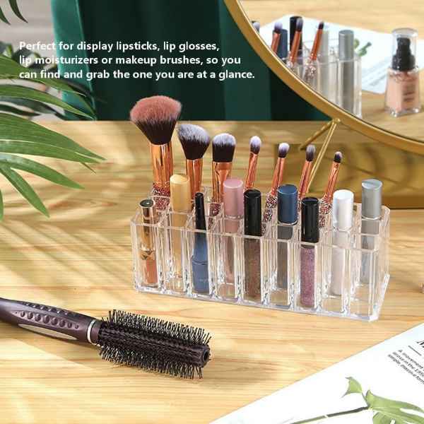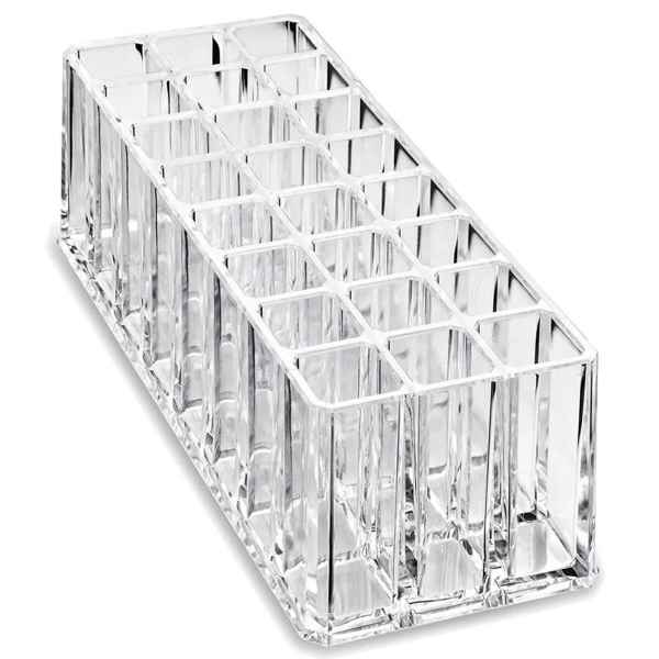 Aukštos kokybės viengubo liejimo akrilas užtikrina visiškai skaidrią, tvirtą ir be klijų sujungimų struktūrą. Šis kosmetikos organizatorius sukurtas taip, kad puikiai tiktų aukštesniems lūpų blizgiams, lūpdažiams ar pieštukams.