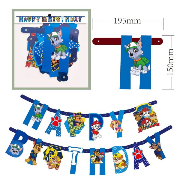 - 1 girlianda - Happy birthday užrašas su šunyčiais patruliais.