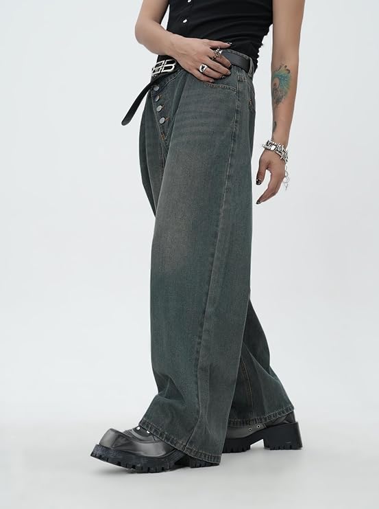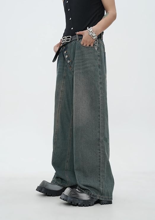 Zewool moteriškomis laisvo kirpimo džinsinėmis kelnėmis. Šie tamsiai mėlyni baggy stiliaus džinsai įkvėpti 2000-ųjų skater ir hip-hop kultūros – puikiai tinka mėgstančioms laisvę, originalumą ir komfortą. Tiesaus ir plataus silueto modelis užtikrina patogų judėjimą, o šoninis įstrižas sagos užsegimas suteikia išskirtinumo ir modernumo.